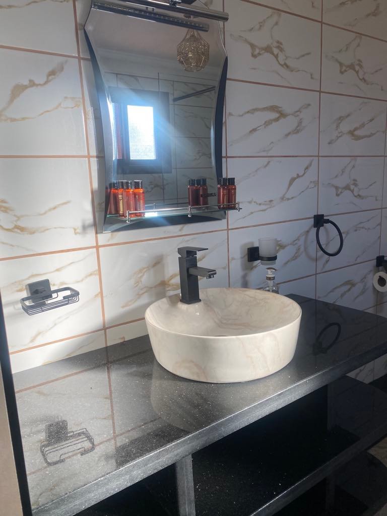 Nous vous proposons une chambre avec 1 lit double et 1 lit simple, douche et WC séparés.